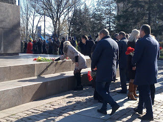 Сьогодні, 28 березня, Миколаїв відзначає 75-річчя визволення міста від німецько-фашистських загарбників. З самого ранку біля меморіального комплексу на честь 68 десантників загону Костянтина Ольшанского в черговий раз зібралися сотні миколаївців, щоб вшанувати пам’ять полеглих і покласти квіти. У церемонії також взяли участь міський голова Олександр Сенкевич, перший заступник голови облдержадміністрації В’ячеслав Бонь, заступник голови облдержадміністрації Валентин Гайдаржи, керівник апарату облдержадміністрації Олександр Демчук, представники Головного управління Держгеокадастру у Миколаївській області та інших установ, депутати, військові та представники духовенства. До заходу долучився також один з живих визволителів міста Миколаєва Дмитро Іванець – ветеран Великої Вітчизняної Війни.
