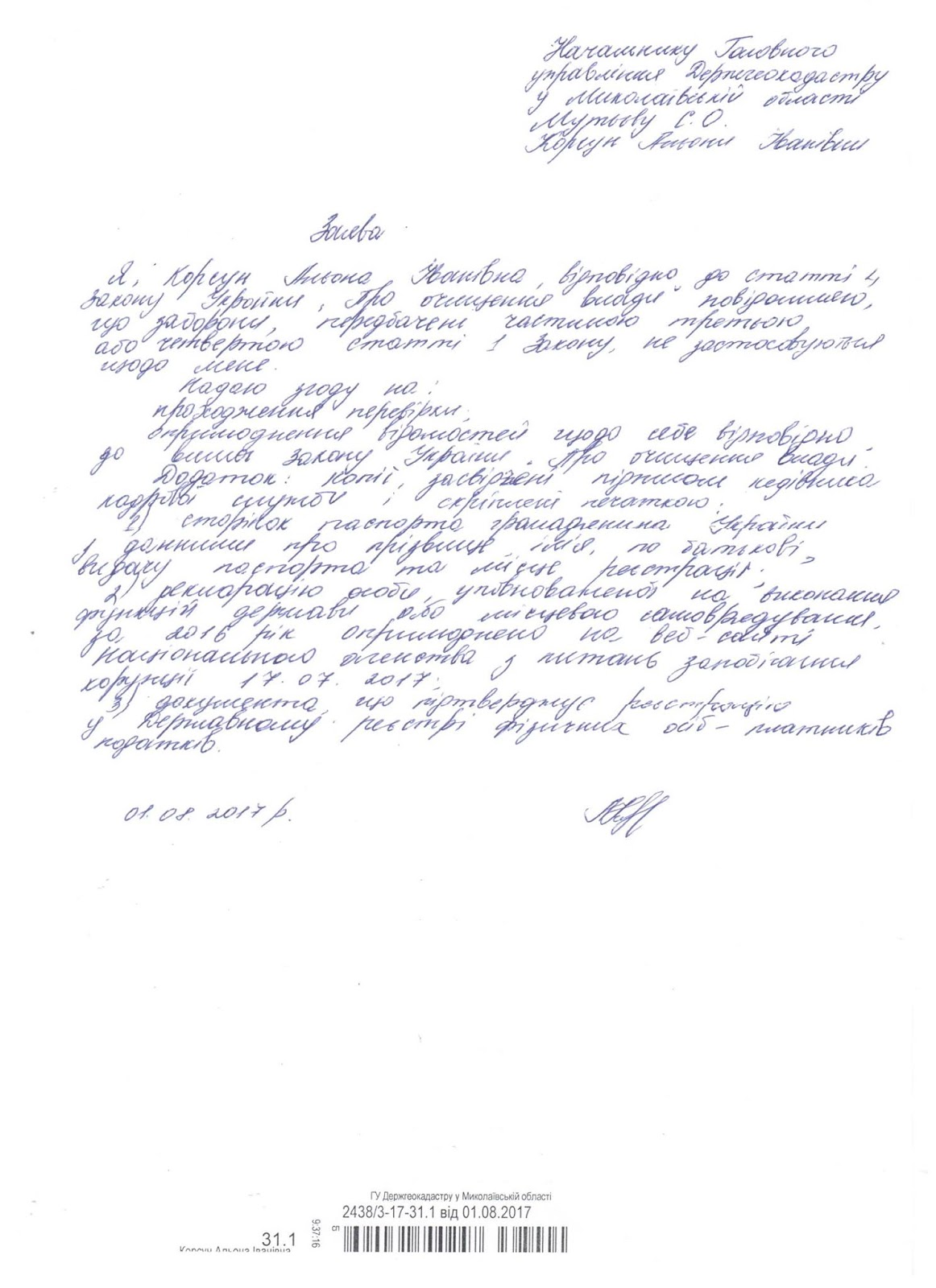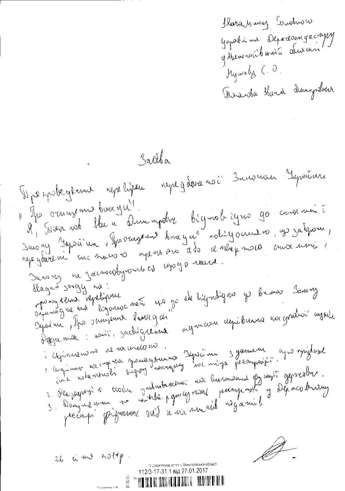 Копія заяви про перевірку